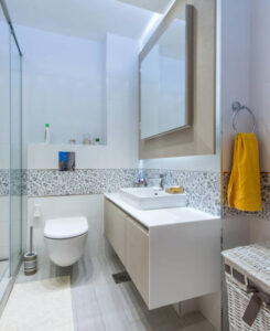 - What’s the best way to save space in a small bathroom?