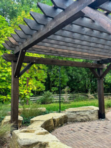 A pergola can transform an organic backyard into a comfortable retreat.Â