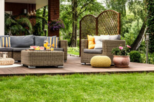 Add Wi-Fi extenders, outdoor lighting, and weatherproof furniture to make it functional.
