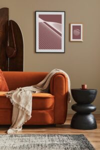 Plus, you don’t need to stick to traditional styling. Earth tones can look boho, modern, or even mid-century depending on your furniture choices and how you layer the textures.