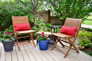A small table with chairs under a tree or umbrella can turn your backyard garden into the perfect place for outdoor meals.