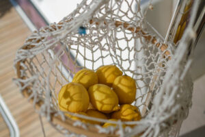 - Stick to one or two fruit colors, like green apples or bright lemons.